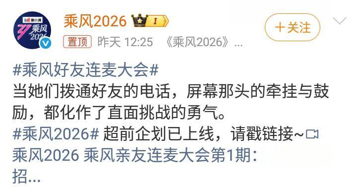 在春暖花开的季节,观众们观看《乘风2026》综艺,也是一种美好的期待!乘风2026写道:“当她们拨通好友的电话,屏幕那头的牵挂与鼓励,都化作了直面挑战的勇气。”