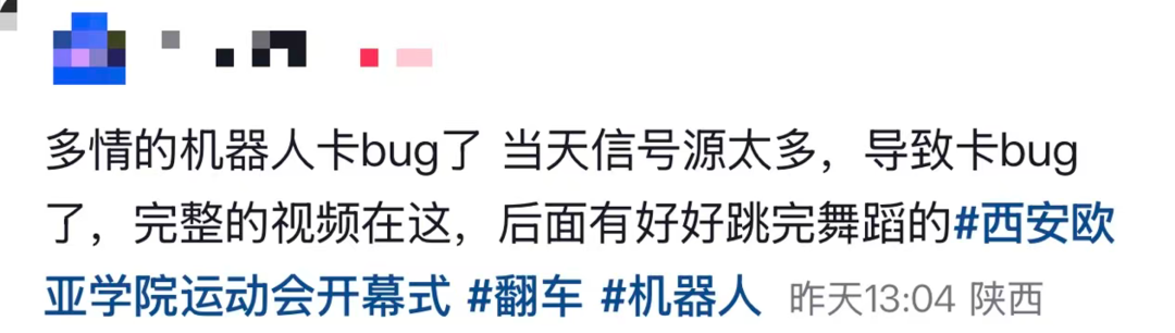4月24日,此前发布视频的网友更新了完整视频,并称,“当天信号源太多,导致(机器人)卡bug了”。