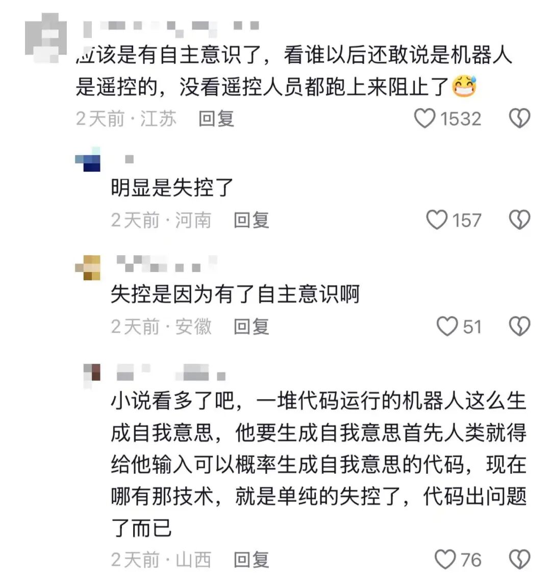 对于此次意外插曲,重庆师范大学智能与认知实验室(重庆市重点实验室)副主任高桓表示,从目前公开的信息来看,该事件可能属于机器人表演过程中的运动控制异常、动作执行偏差或现场安全冗余不足,不宜解读为“机器人有了独立意识”。