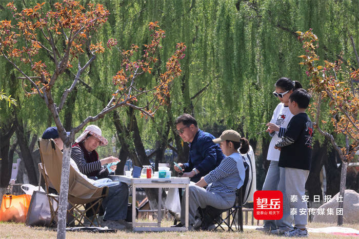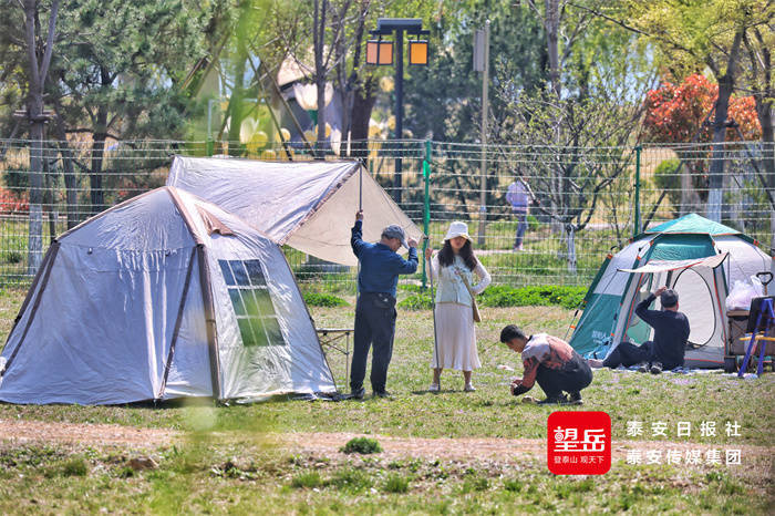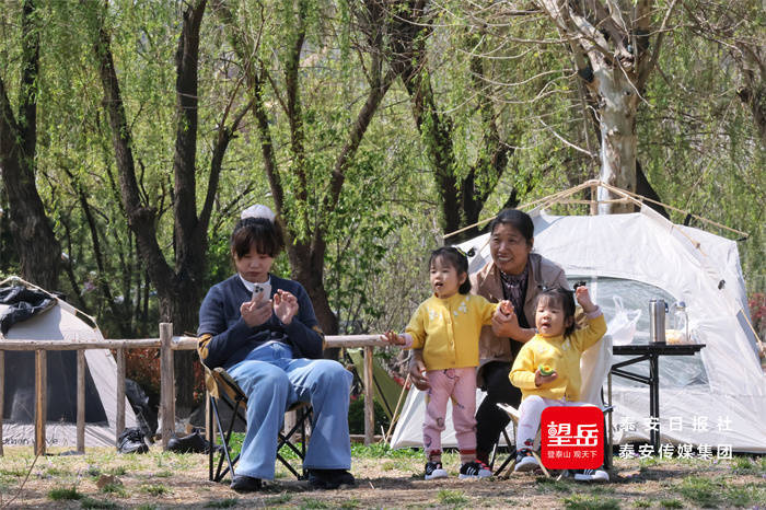 市民游客结伴出游,漫步赏景、拍照留念,不少人支起帐篷惬意露营,亲近自然放松身心,乐享明媚美好的春日时光。