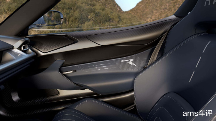 在内饰中,一处“特殊刺绣”指向Rimac公司历史中的三个阶段:车库创业时期、首款量产车型以及当下的Nevera车型,每一辆车都会根据车主的个人需求打造——从皮革到车漆,全部可以定制,都是手工缝制、部分细节手工绘制,算是真正的独一无二作品。