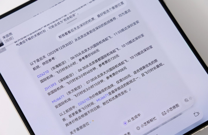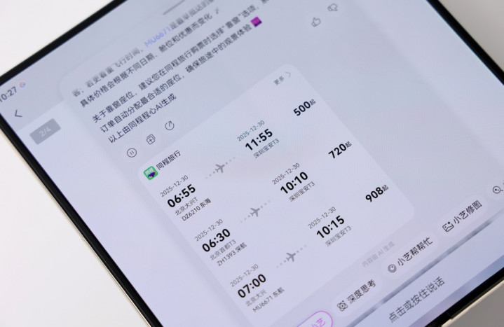 例如,在准备出差行程时,直接对小艺说"帮我看看后天去深圳的机票,最好能选个靠窗的位置",它不只是提供航班搜索页,而是尝试调用航司或出行App里的智能服务,帮助用户完成航班筛选、选座等环节。