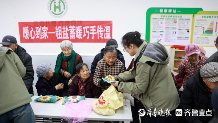 活动以"粗盐蓄暖巧手传温"手工盐袋制作拉开序幕。志愿者备好纯棉布袋、粗盐、艾草等材料,讲解粗盐热敷养生功效与使用方法。在志愿者协助下,老人们兴致勃勃地填充粗盐、缝制封口,一边交流技巧,一边分享心得。不一会儿,充满艾草清香的暖心盐袋陆续完成,老人手捧作品,脸上满是喜悦与成就感。